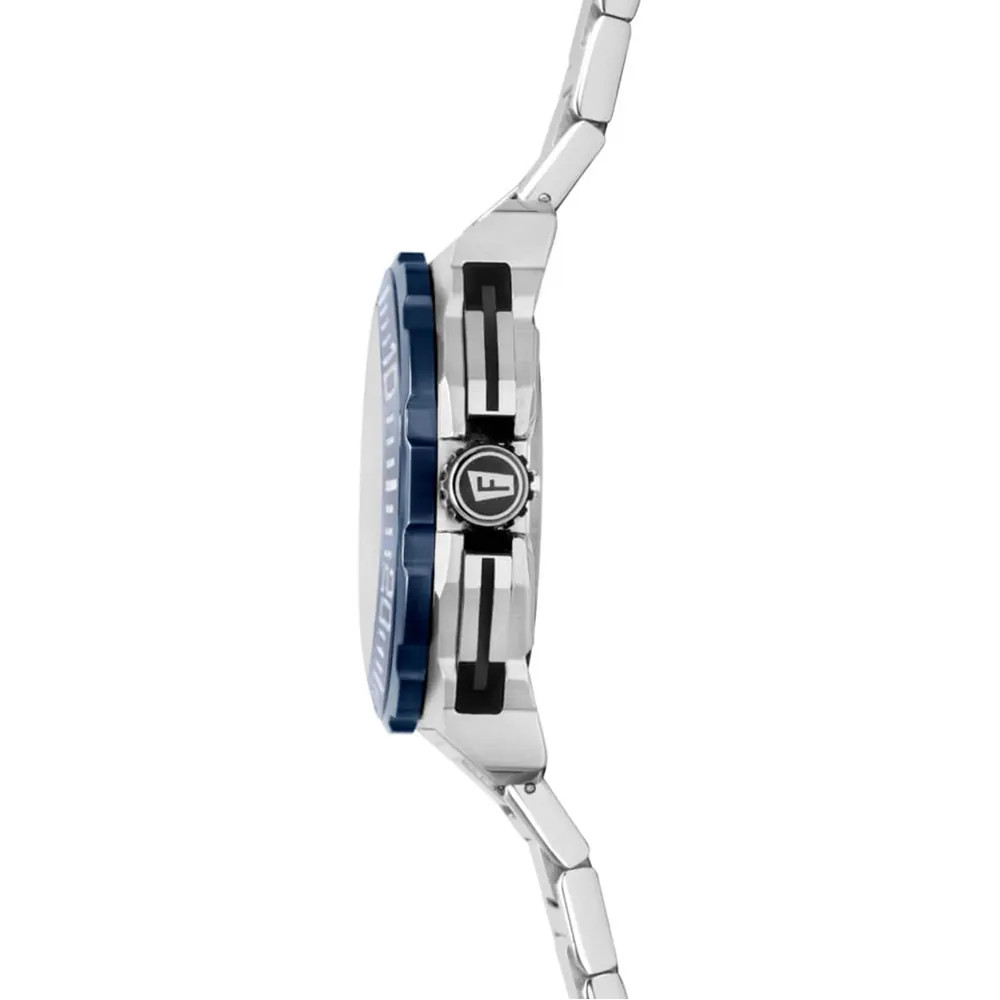 Robusztus és ellenálló 316L rozsdamentes acélból készült tokja maximális védelmet nyújt az ütésekkel, karcolásokkal és korrózióval szemben. Három almutató biztosítja a nagy pontosságú stopperóra funkciót, míg a 6 óránál elhelyezett dátumkijelző praktikus kiegészítője az órának. A számlapon található lumineszcens acél indexek és a nagy, szintén lumineszcens mutatók biztosítják a könnyű leolvashatóságot még gyenge fényviszonyok között is. Keményített ásványiüveg védi a számlapot, a menetes koronának köszönhetően az óra 20 ATM (200 méter) vízállósággal rendelkezik.