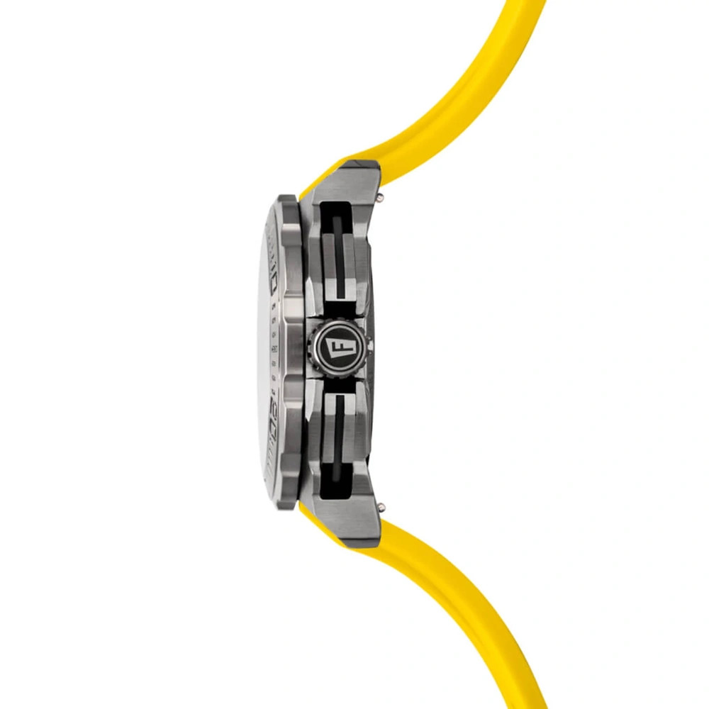 Robusztus és ellenálló 316L rozsdamentes acélból készült tokja maximális védelmet nyújt az ütésekkel, karcolásokkal és korrózióval szemben. Három almutató biztosítja a nagy pontosságú stopperóra funkciót, míg a 6 óránál elhelyezett dátumkijelző praktikus kiegészítője az órának. A számlapon található lumineszcens acél indexek és a nagy, szintén lumineszcens mutatók biztosítják a könnyű leolvashatóságot még gyenge fényviszonyok között is. Keményített ásványiüveg védi a számlapot, a menetes koronának köszönhetően az óra 20 ATM (200 méter) vízállósággal rendelkezik.