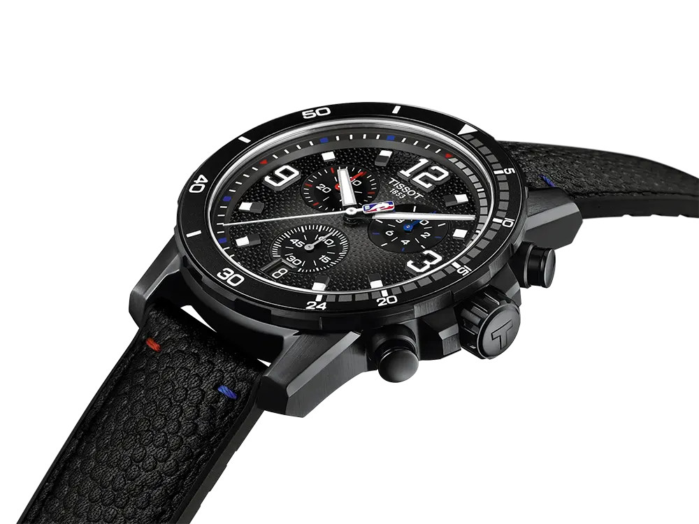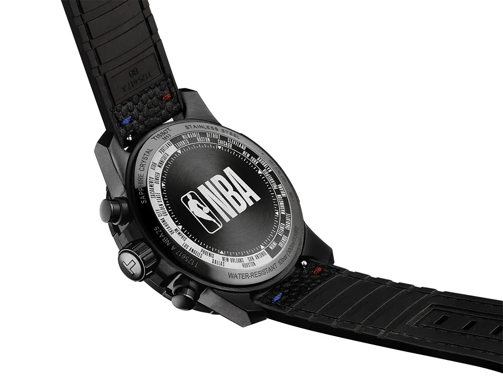 Tissot T125.617.37.067.00 egy különleges NBA Special Editon sportos és időtlen svájci férfi karóra fekete PVD bevonattal, stopper funkcióval, az NBA színeivel és fekete hibrid bőr/kaucsuk szíjjal.