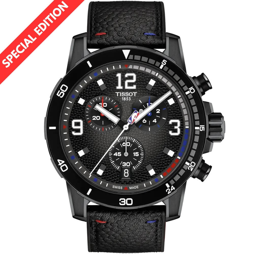 A Tissot Supersport Chrono NBA edition T125.617.37.067.00 egy modern és férfias sportkronográf óra, amely a minőségi svájci óragyártást és dizájnt ötvözi a Tissot kosárlabdával való hosszú kapcsolata által ihletett nagy energiájú dinamikával. A színátmenetes fekete számlap eredeti kosárlabda-háló mintájával és a szíj narancssárga sarokvarrásával ékeskedik erre a tudományágra és annak kultúrájára. A 45,5 mm-es rozsdamentes acél tok fekete-PVD bevonattal, fix előlappal és tachimetrikus skálával rendelkezik. Fel van szerelve egy élettartam-végi funkcióval, amely jelzi, ha az elemet cserélni kell, és az indexek és mutatók Super-LumiNova® bevonattal vannak ellátva, hogy jól látható legyen az idő.