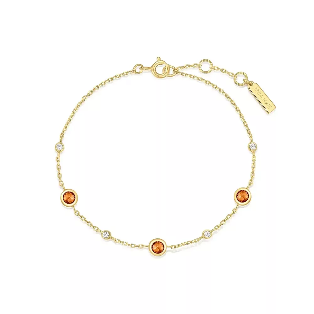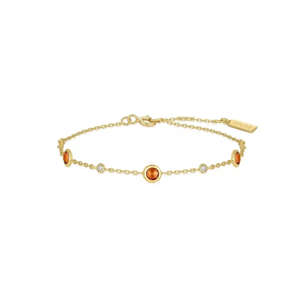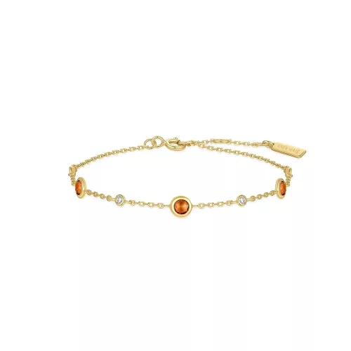 A „Station” kialakítás apró, aranyszínű elemekből álló sorozatot jelent, melyeket nano-kövek (cirkónia/nanogem) díszítenek. Ez a részlet visszafogott fényjátékot biztosít — elegáns választás önállóan, de jól illeszthető más karkötőkkel is rétegezés céljából.