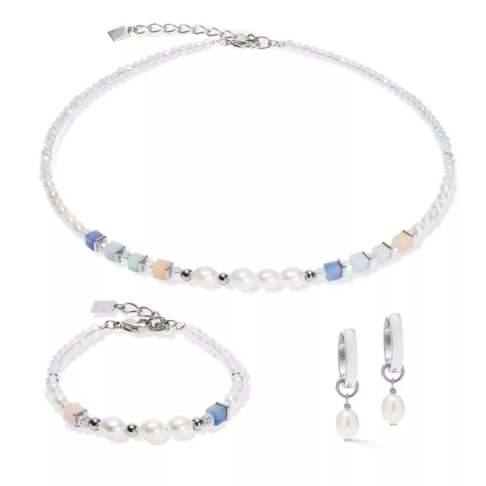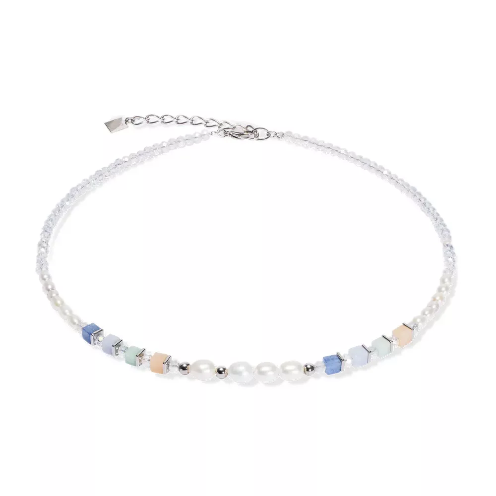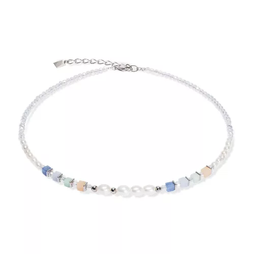 Coeur de Lion 1135/10-1522 Cosmic Pearls nyaklánc fehér és ezüst színben Édesvízi gyönggyel, Amazonittal, Kalcedon, Kék és Pink Aventurinnal és kristályokkal.