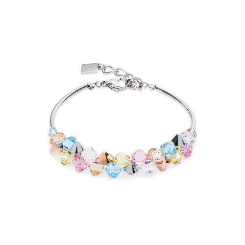 A Coeur de Lion 2038/30-1522 Dancing Crystals Silver Pastel karkötő elegáns dizájn és német kézművesség ötvözete. Rozsdamentes acél alapja ezüst színű, pasztell kristály kövei (Swarovski® stílus) játékosságot és kifinomultságot adnak.