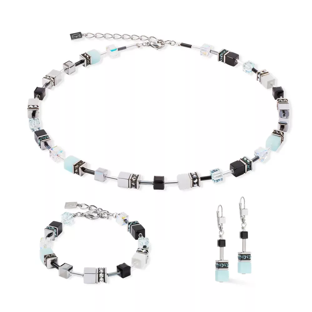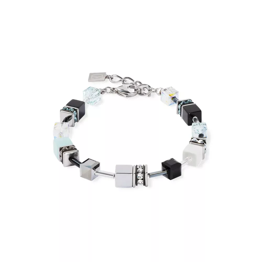 Coeur de Lion 2838/30-2027 GeoCube Iconic karkötő fekete és ezüst színben szintetikus Tigrisszem, Hematit titanium oxid bevonattal és Swarovski kristályokkal.