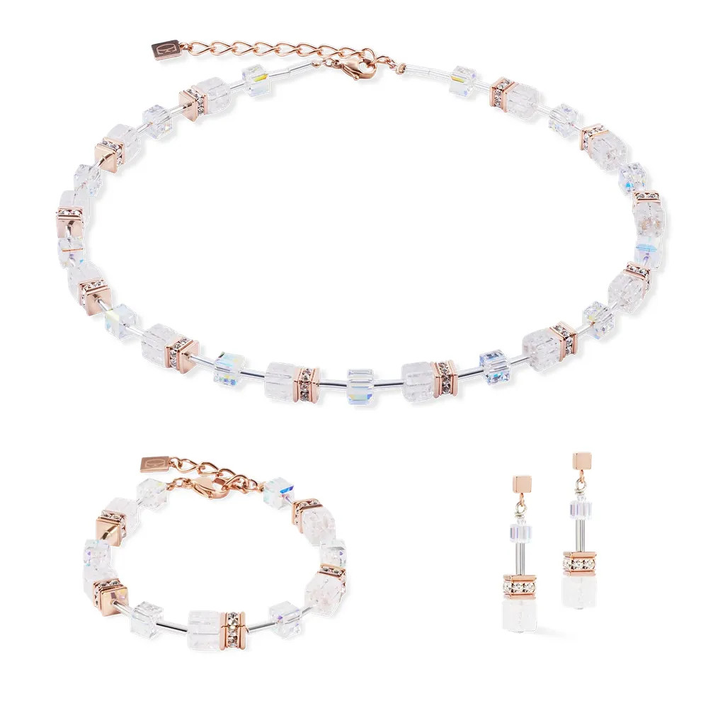 Coeur de Lion 3018/30-1425 GeoCube Iconic Nature karkötő rosegold és fehér színben vágott üveg és Swarovski kristályokkal.