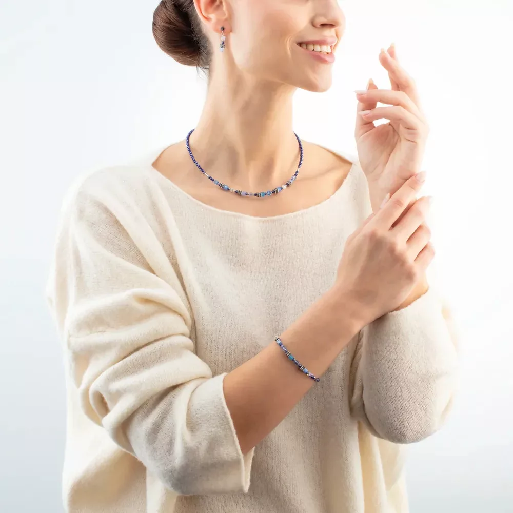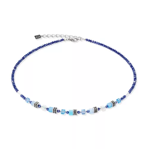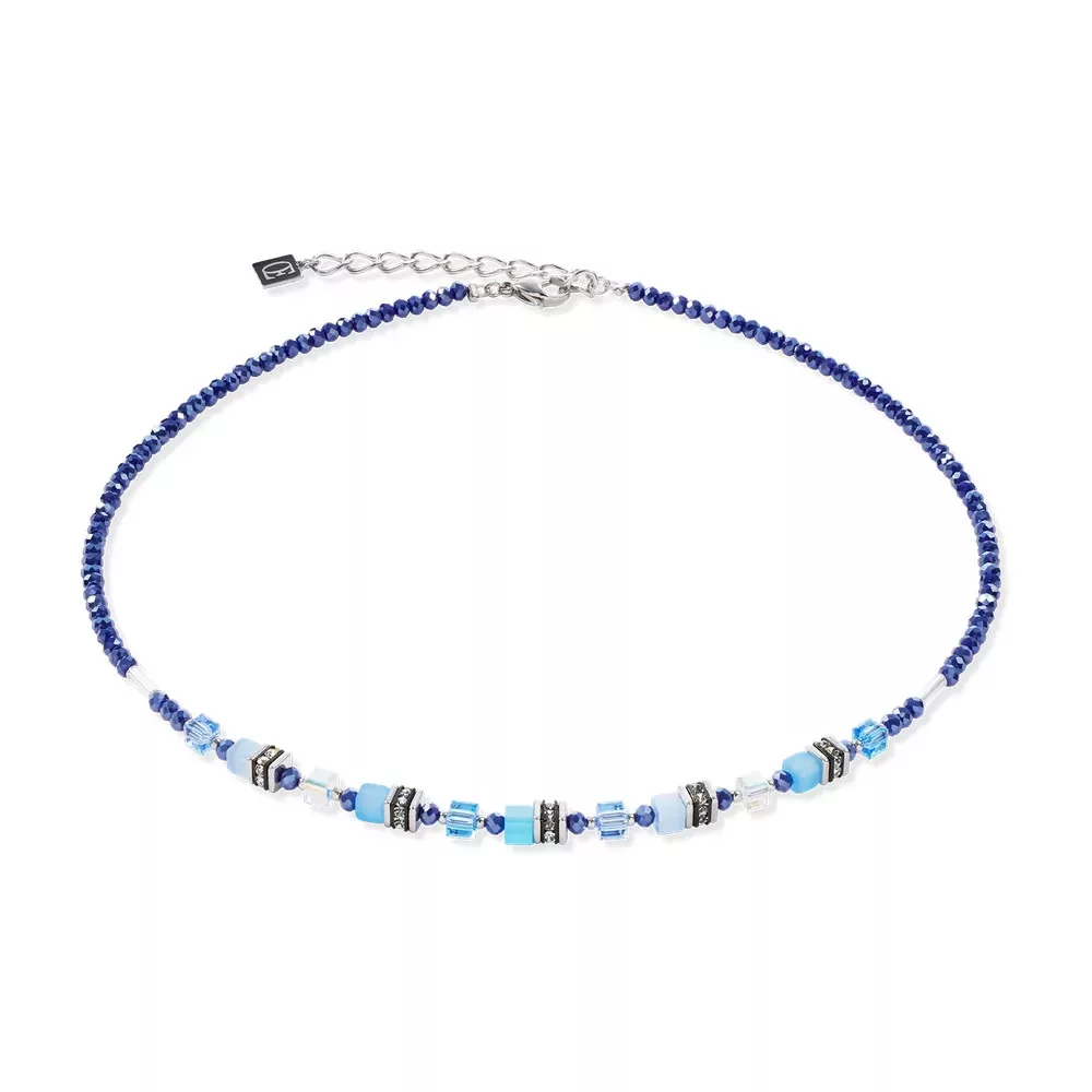 Coeur de Lion 4565/10-0700 Mini Cubes nyaklánc kék és ezüst színben szintetikus Tigrisszemmel és Swarovski kristályokkal.