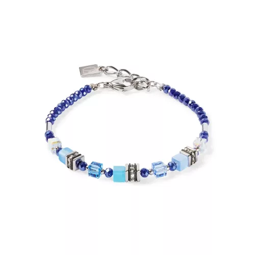 Coeur de Lion 4565/30-0700 Mini Cube karkötő kék és ezüst színben vágott üveg, szintetikus tigrisszemmel és Swarovski kristályokkal.