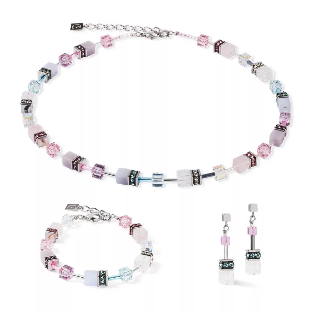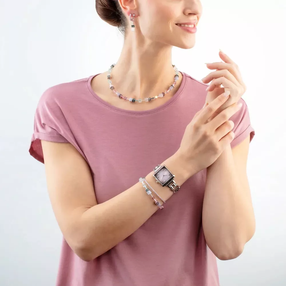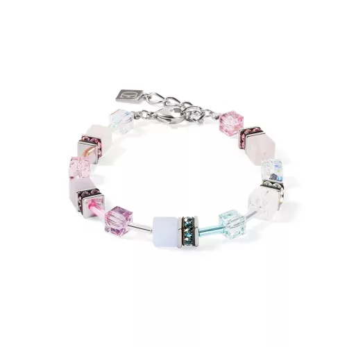 Coeur de Lion 4905/30-1927 GeoCube Iconic karkötő pink,kék és ezüst színben Kalcedon, Hegyikristály, Rózsakvarc és Swarovski kristályokkal.