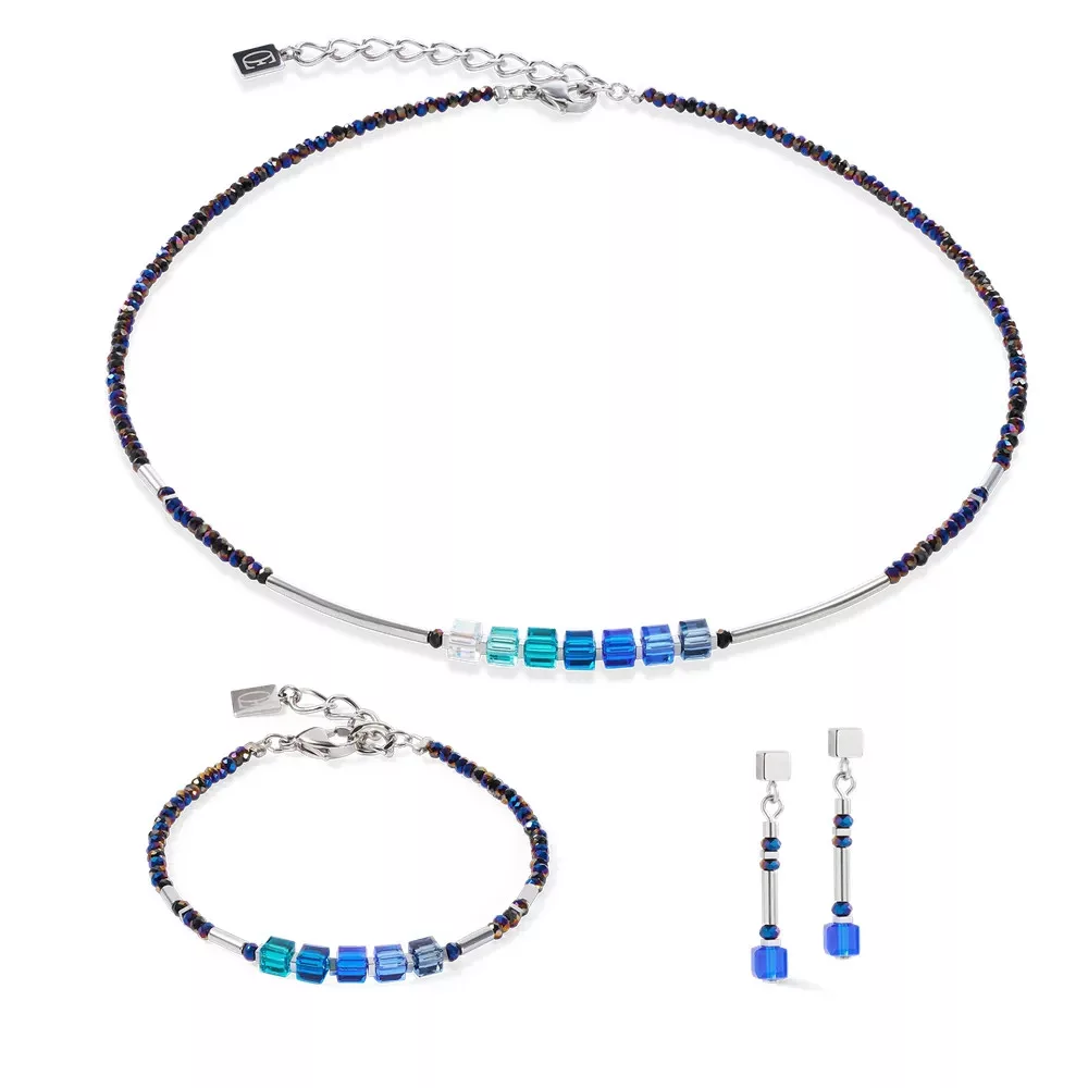 Coeur de Lion 5027/30-0700 Cube karkötő kék és ezüst színben hematittel és Swarovski kristályokkal.