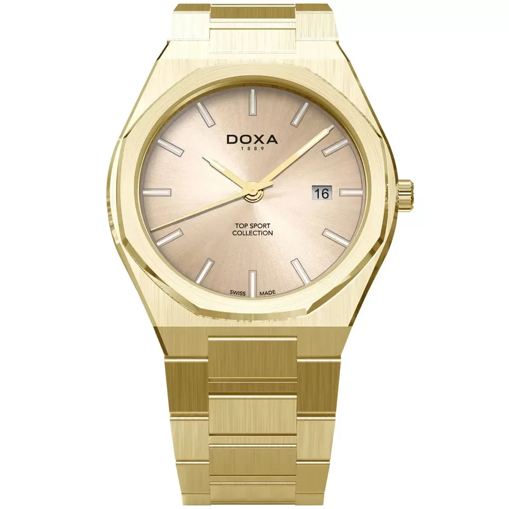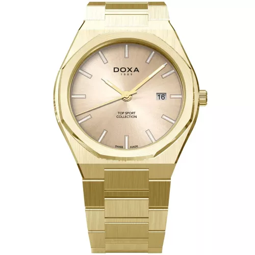 A Doxa 168.30.301.10 karóra svájci kvarc szerkezettel, zafír üveggel és arany tónusú nemesacél tokkal– elegáns és precíz időmérő női csuklóra.