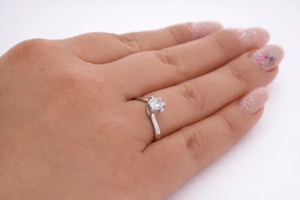 A különleges csavart kialakítás két oldalról öleli körbe a központi követ, így dinamikus és harmonikus megjelenést biztosít. Ez a dizájn egyszerre modern és időtálló, amely kiemeli a gyűrű elegáns formáját.