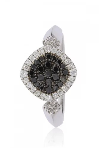 Fehér arany gyémánt és fekete gyémánt köves gyűrű 81814