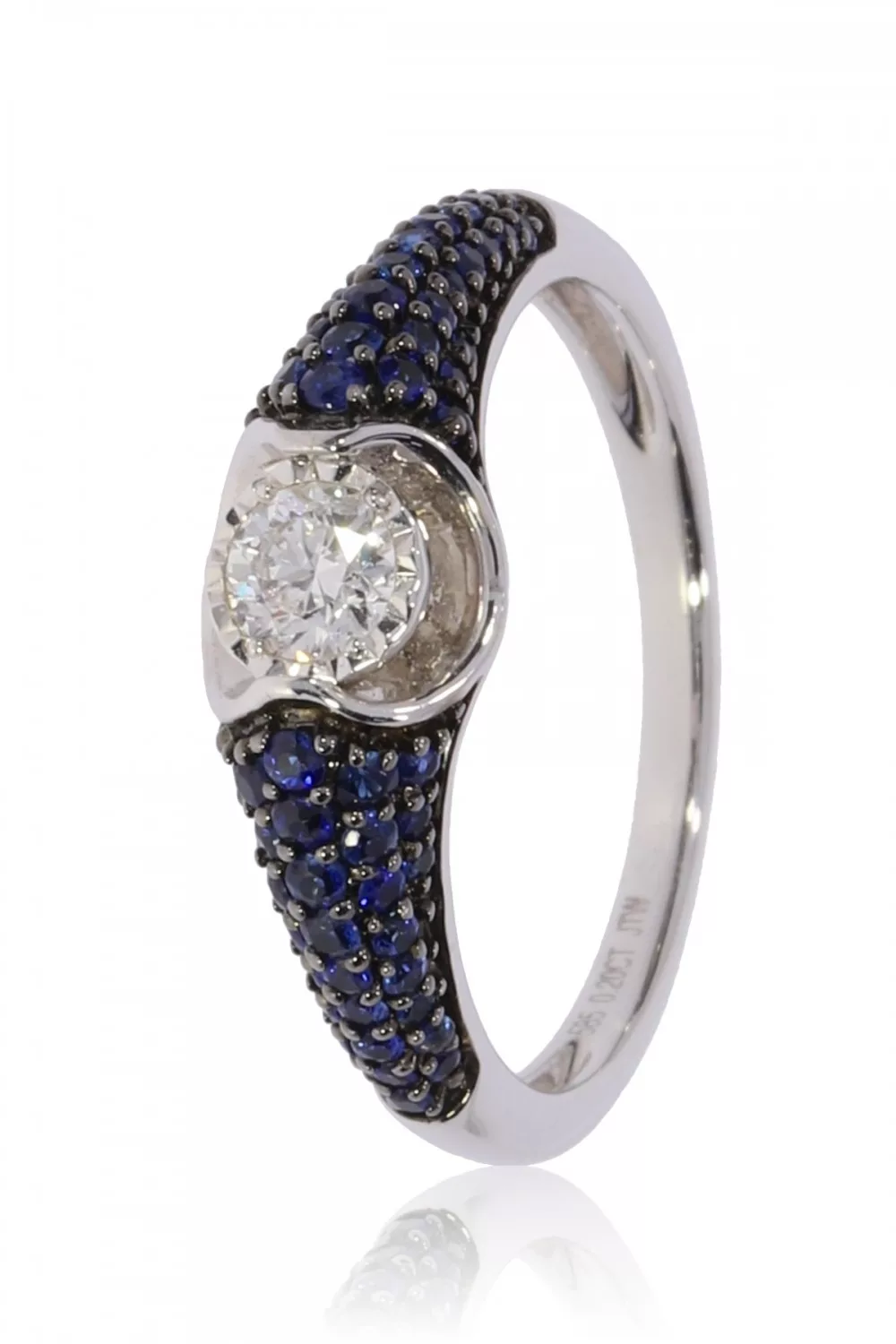 Fehér arany gyémánt és zafír köves gyűrű 76958