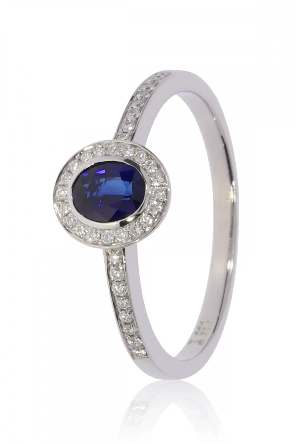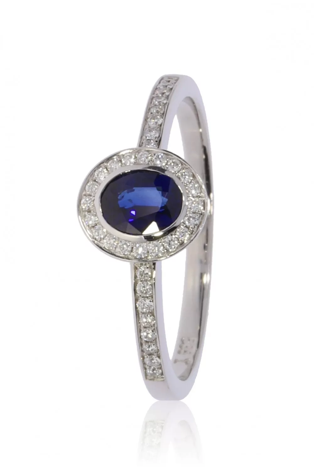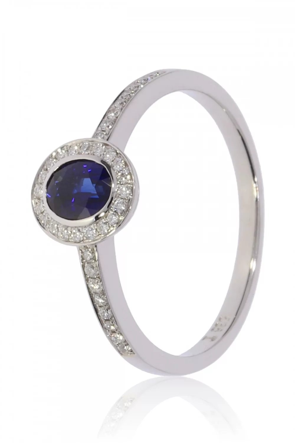 Fehér arany gyémánt és zafír köves gyűrű 89079