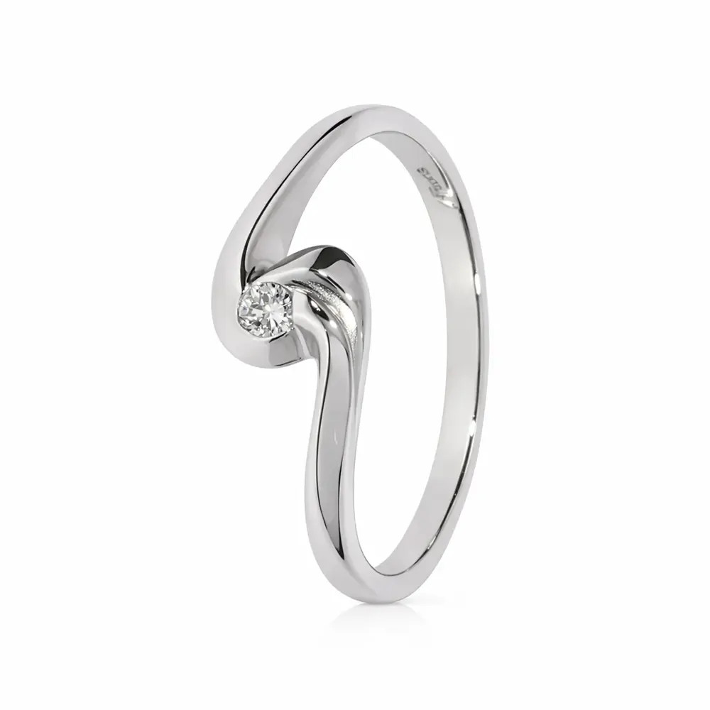 A Miluna 18 karátos fehér arany gyűrű az olasz elegancia és a modern formavilág kifinomult találkozása. A gyűrű középpontjában egy ragyogó 0,07 ct gyémánt kő kapott helyet, amely finoman kiemelkedik a karcsú, ívelt vonalvezetésű foglalatból. A kialakítás lehetővé teszi, hogy a kő minden irányból fényt kapjon, így elegáns csillogást biztosít.