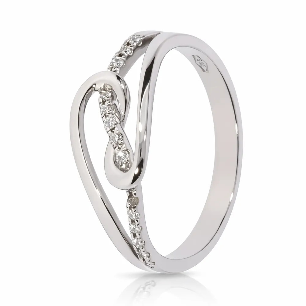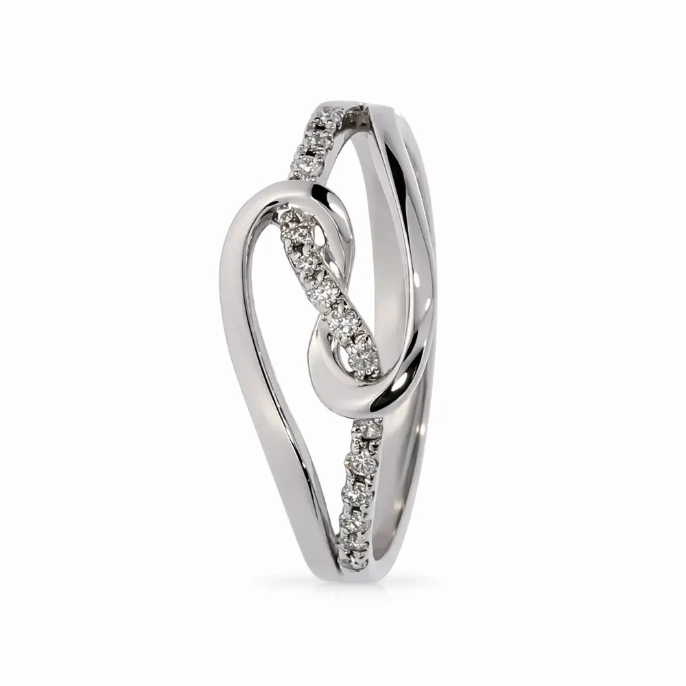 Végtelen mintás gyémánt gyűrű ragyogó sorköves kialakítással. A 14 karátos fehér arany modern eleganciát és kifinomult megjelenést biztosít.