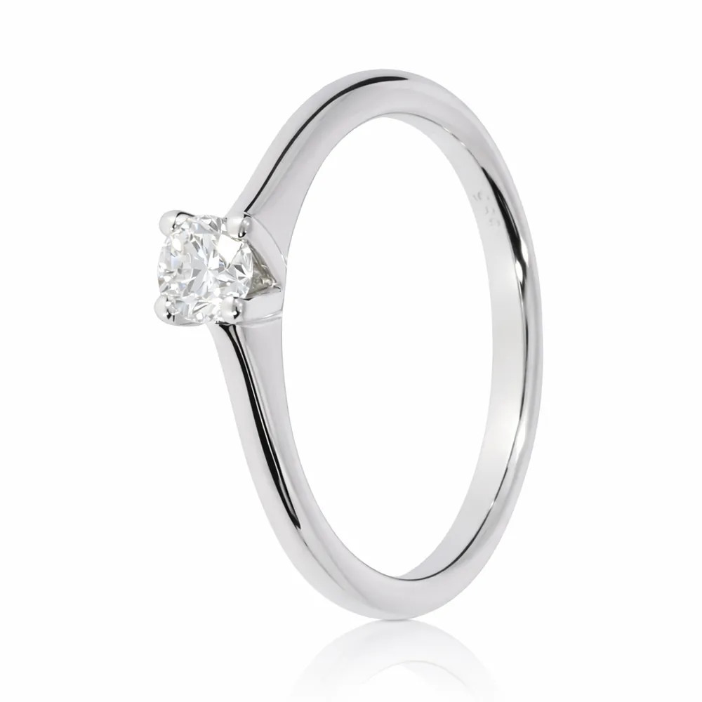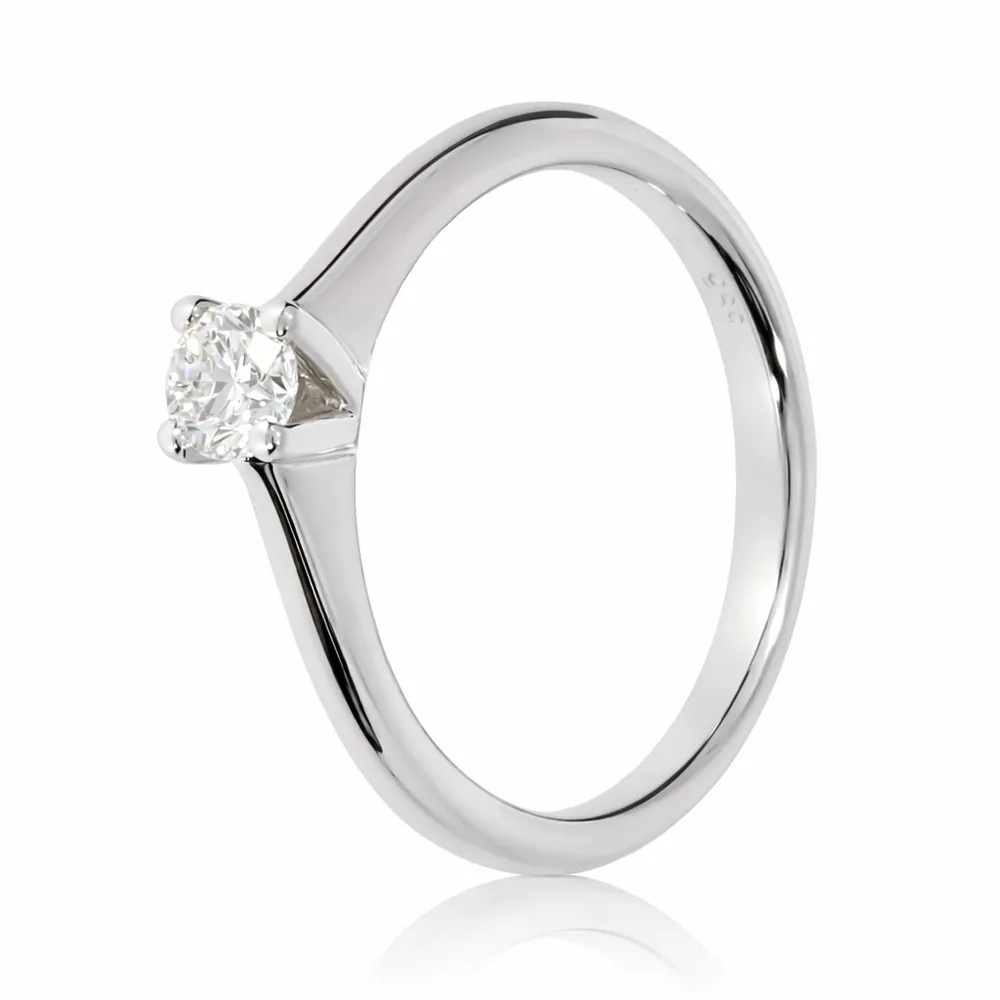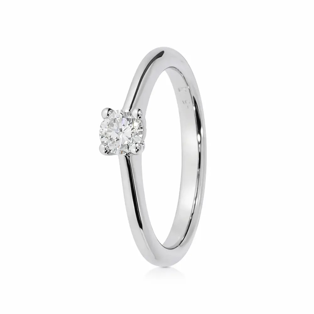 Klasszikus elegancia egy 0,20 ct gyémánttal. A fehér arany szoliter gyűrű négykarmos foglalatban tartott gyémánt kővel készült, amely tökéletes választás eljegyzéshez és kifinomult mindennapi viselethez.
