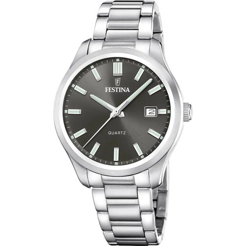 A Festina F20736/5 modell a klasszikus stílust és a modern funkcionalitást ötvözi harmonikusan. A 42 mm átmérőjű, kerek 316L rozsdamentes acél tok elegáns megjelenést biztosít, míg a letisztult fekete számlap visszafogott, de határozott stílust kínál.