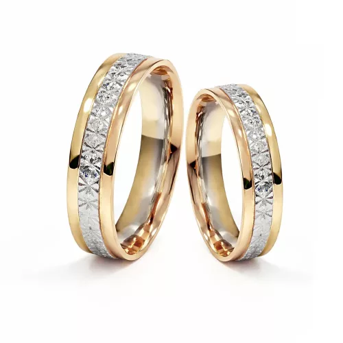 Sárga-fehér-vörös arany karikagyűrű pár - J125
