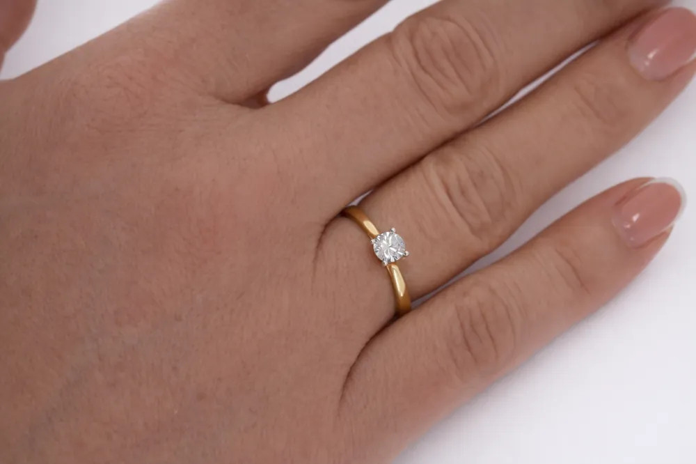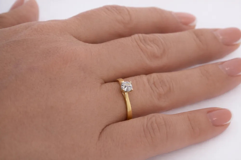 Klasszikus szoliter eljegyzési gyűrű 14 karátos sárga arany fehér foglalat cirkon kővel - 103397