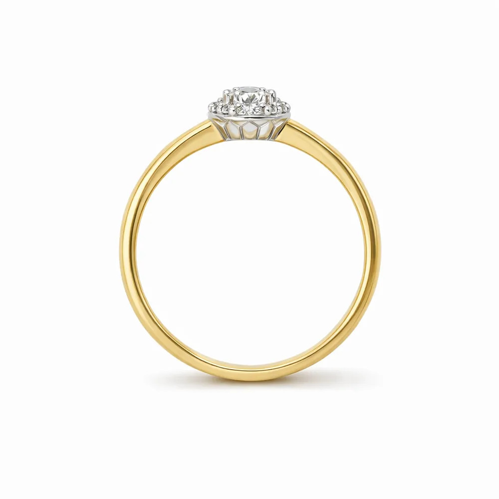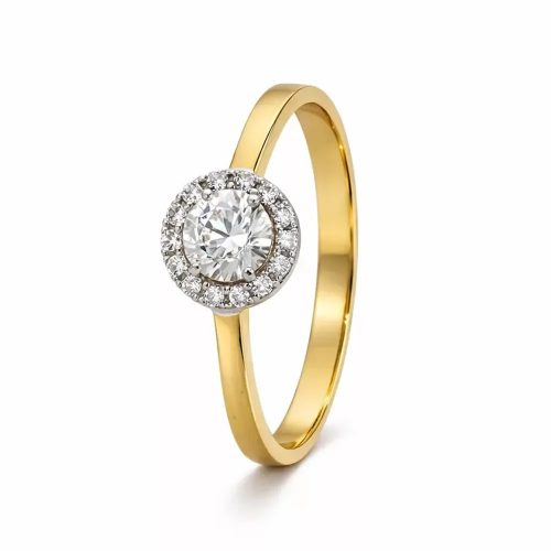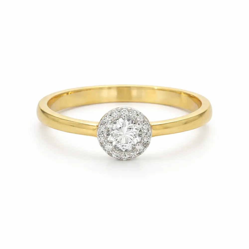Köves eljegyzési gyűrű 18 karátos sárga arany fehér foglalattal és cirkon kövekkel - 92190