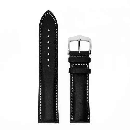 Az eredeti Longines 21 mm-es fekete sima bőr óraszíj fehér varrással, Conquest modellekhez.