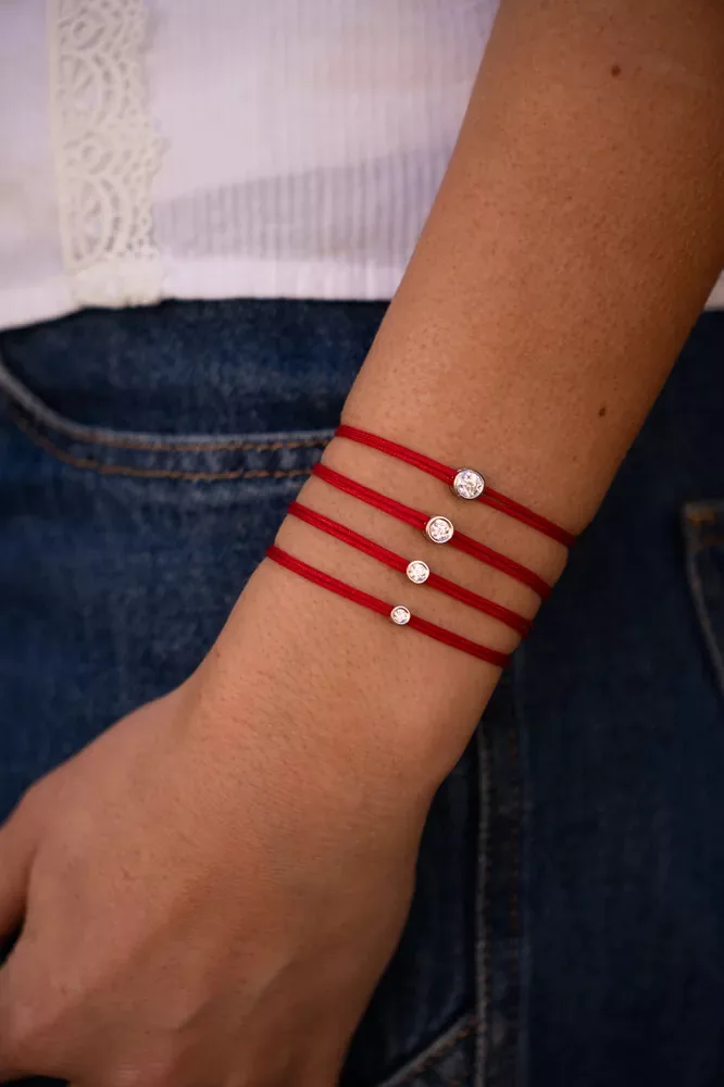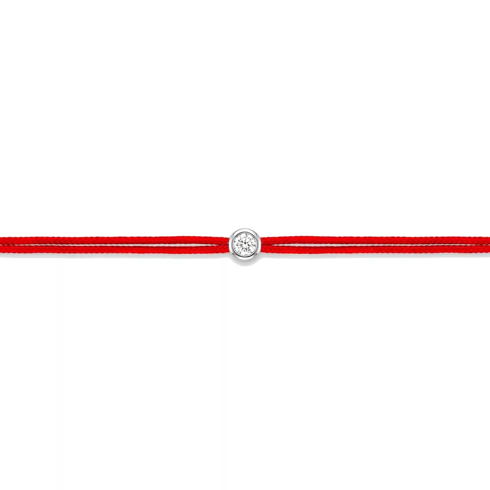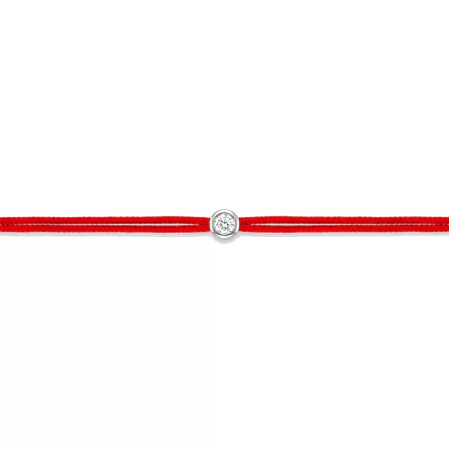 A piros szövet karkötő és a kerek, 0,005 ct méretű gyémánt harmonikus párost alkot. A 925 ezüst foglalat finoman emeli ki a kő csillogását, miközben nem válik hivalkodóvá. Viselése során egyensúlyt teremt a modern divat és az időtálló elegancia között, így tökéletes választás lehet mindennapi viselethez és alkalmi megjelenéshez is.