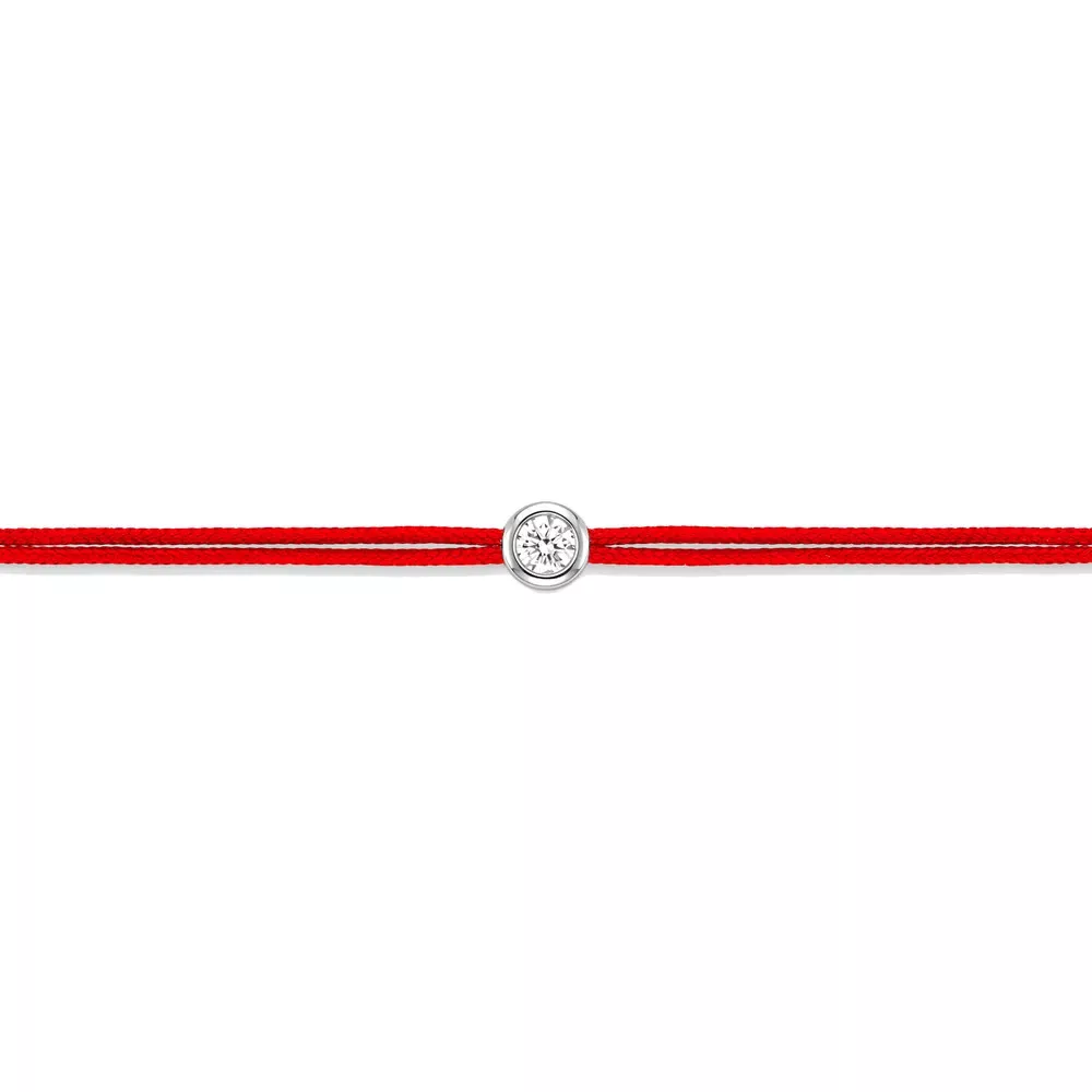 A piros szövet karkötő és a kerek, 0,010 ct méretű gyémánt harmonikus párost alkot. A 925 ezüst foglalat finoman emeli ki a kő csillogását, miközben nem válik hivalkodóvá. Viselése során egyensúlyt teremt a modern divat és az időtálló elegancia között, így tökéletes választás lehet mindennapi viselethez és alkalmi megjelenéshez is.