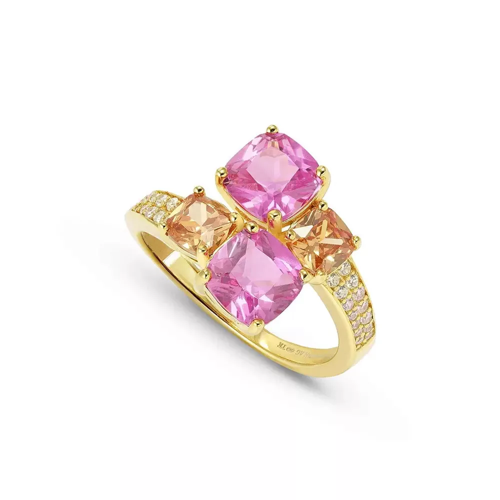 A Nomination 149851/012/006 gyűrű arany bevonatú ezüstből, cirkon kövekkel és elegáns kétköves dizájnnal készült.