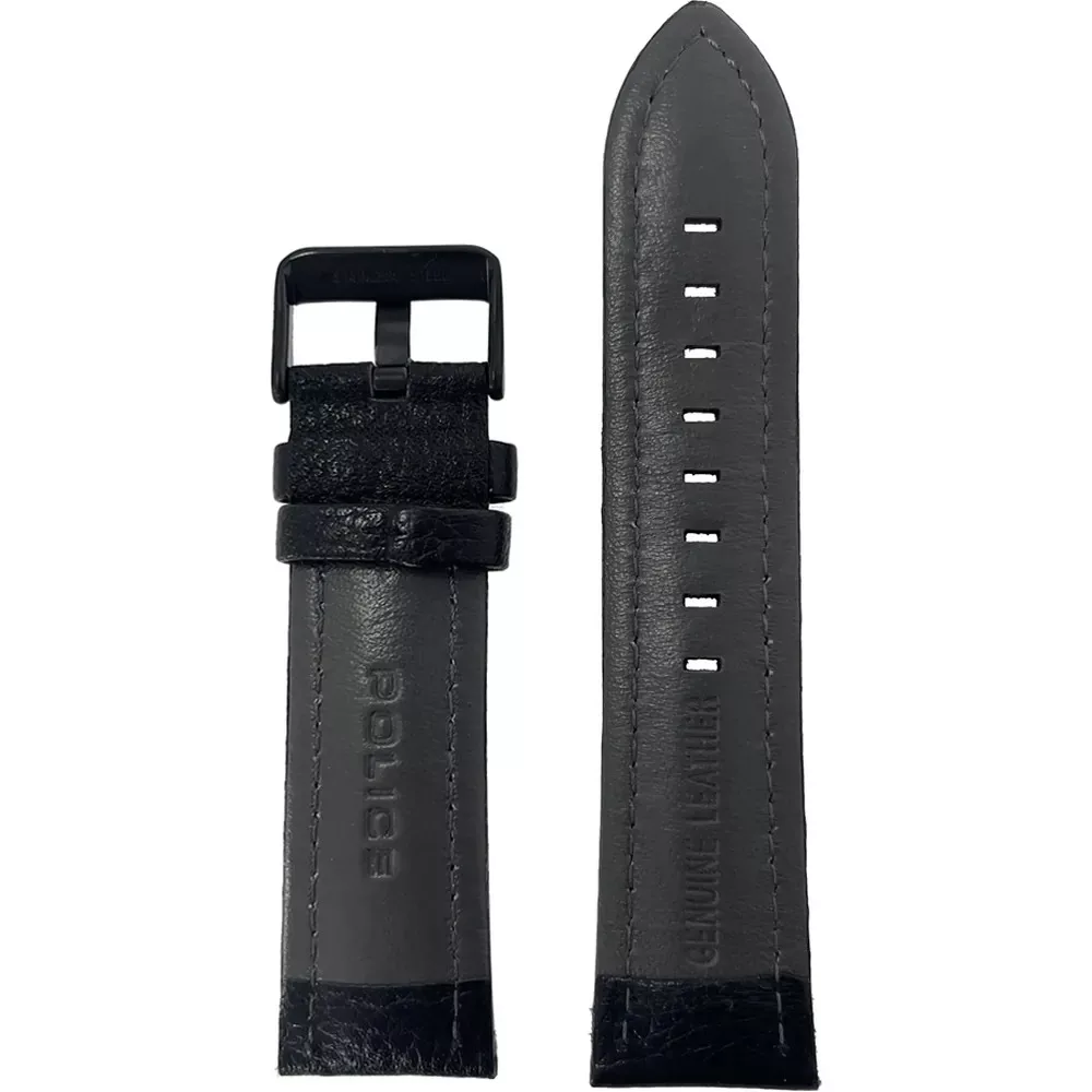 Az eredeti Police 24 mm-es fekete bőr óraszíj logóval és modern fekete csattal