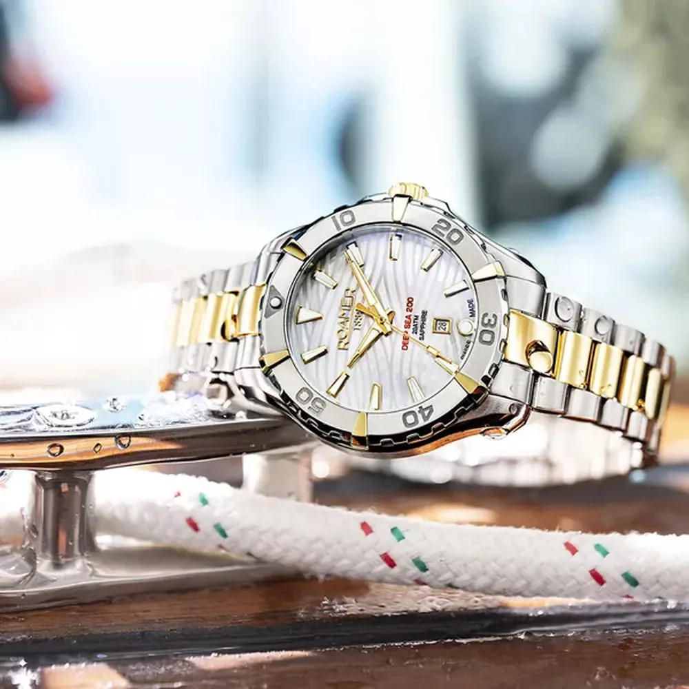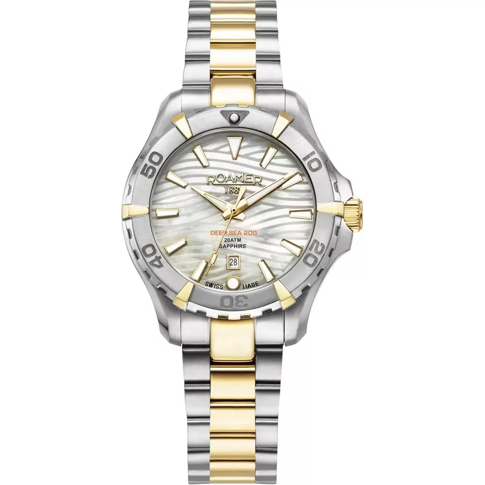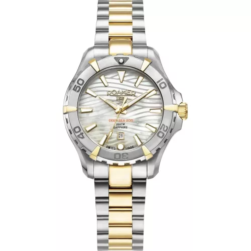 A Roamer Deep Sea 200 860844472020 női karóra rozsdamentes acél tokkal és szíjjal, zafír üveggel és 200 m vízállósággal. Dátumfunkció, forgatható lünetta, elegáns dizájn.