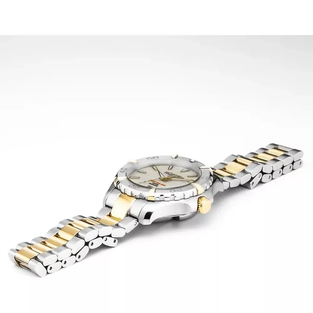 A karóra tokátmérője 34,6 mm, vastagsága 10,7 mm, a szíjszélesség 16 mm, hogy női csuklón is esztétikus legyen. A dátummutató, foszforeszkáló indexek és mutatók is segítik a használatot gyengébb fényben.