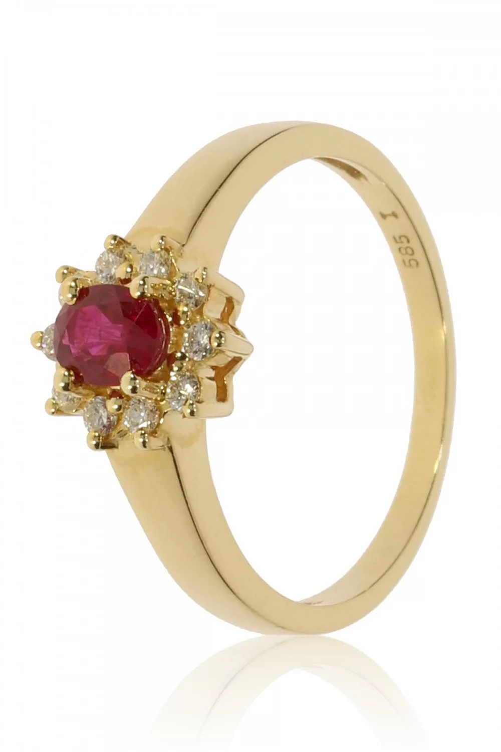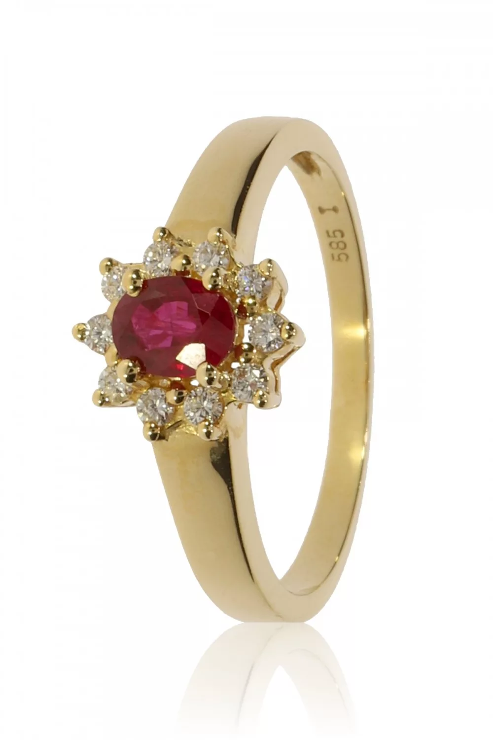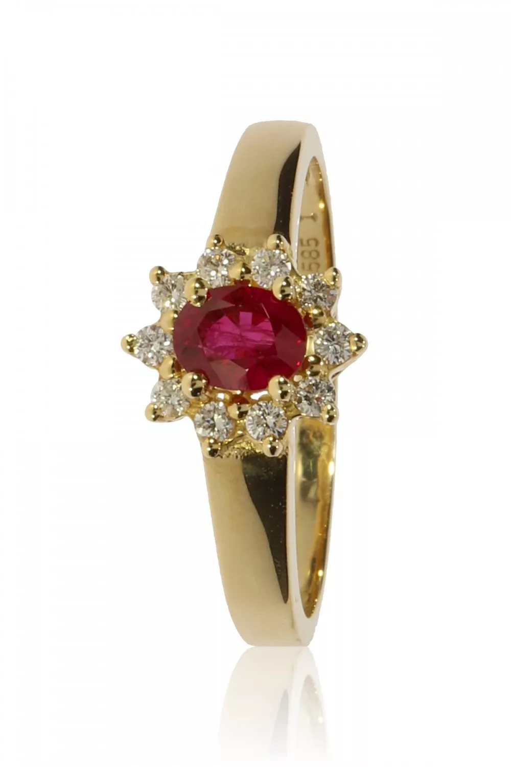 Sárga arany gyémánt és rubin köves gyűrű 81534