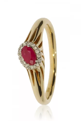 Sárga arany gyémánt és rubin köves gyűrű 87594