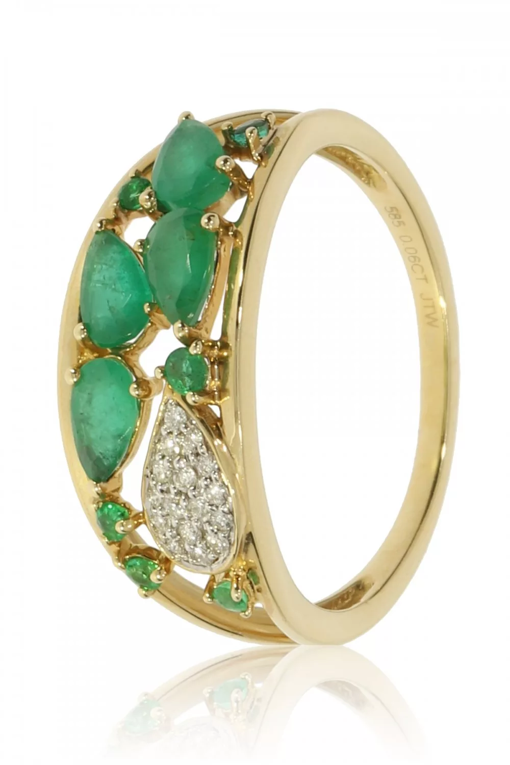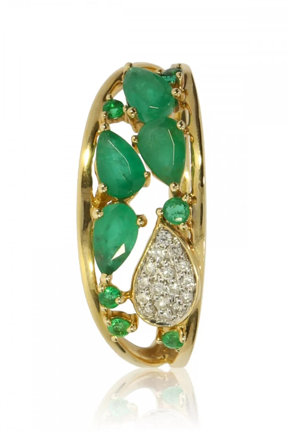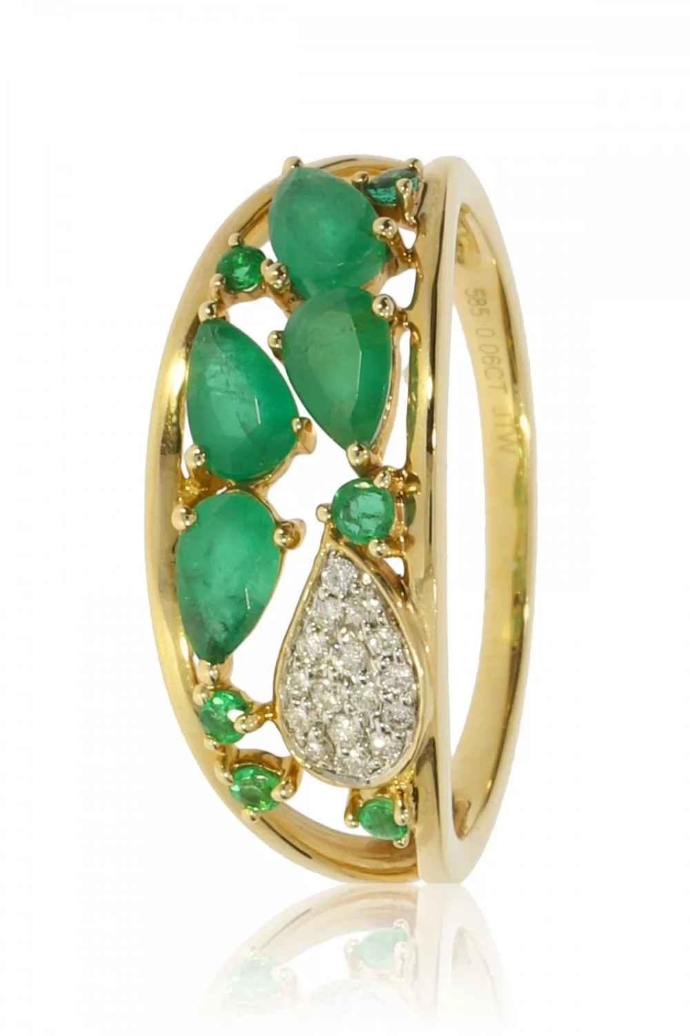 Sárga arany gyémánt és smaragd köves gyűrű 77015