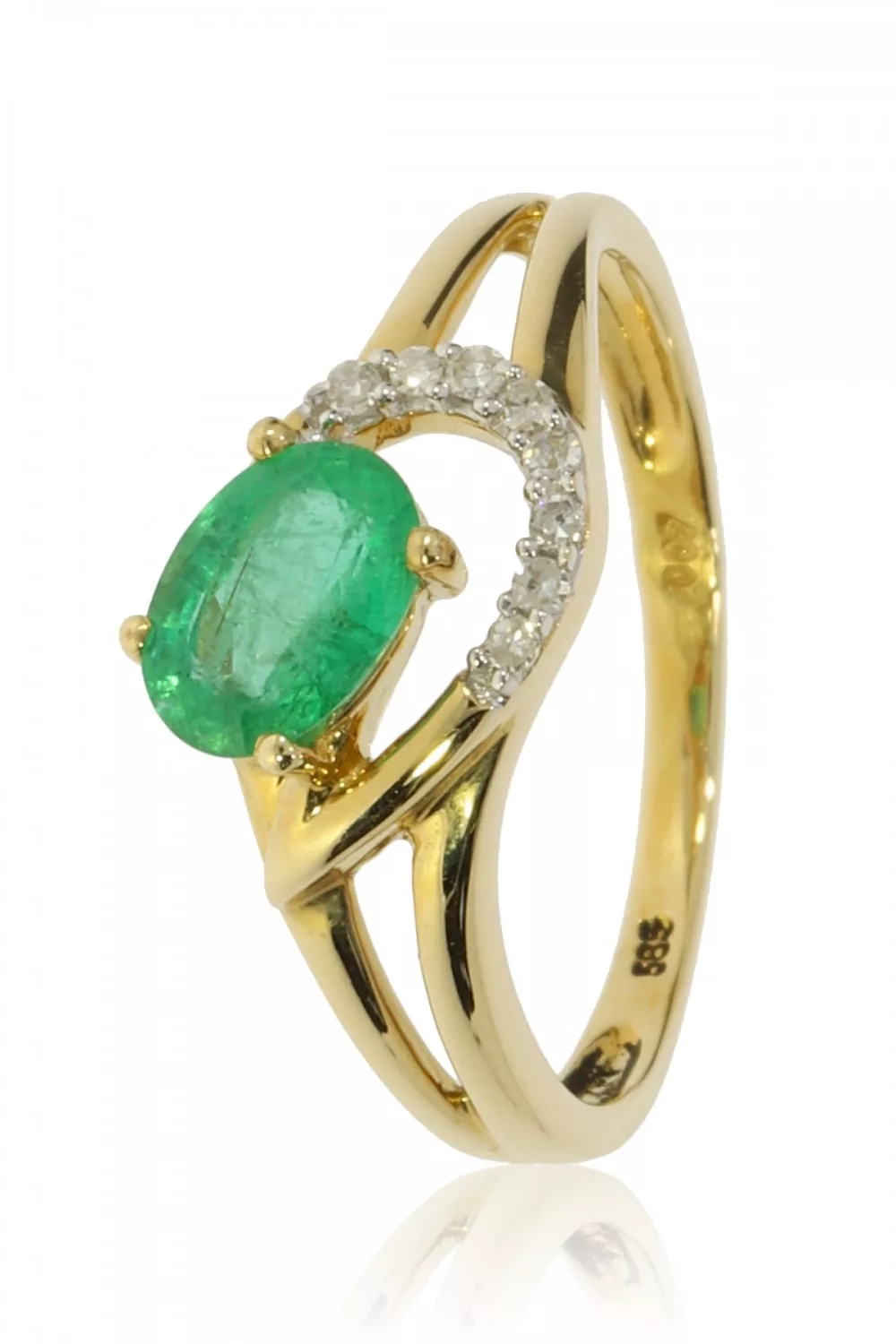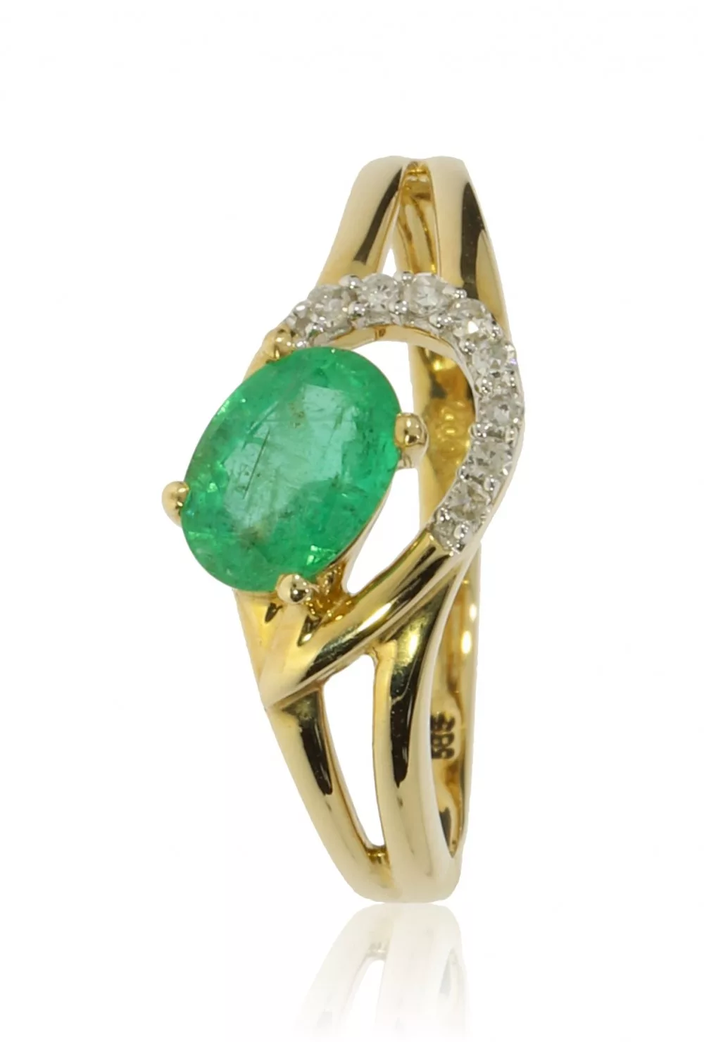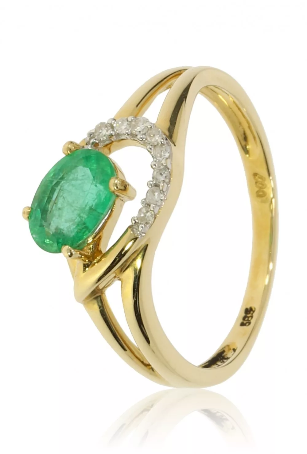 Sárga arany gyémánt és smaragd köves gyűrű 89650