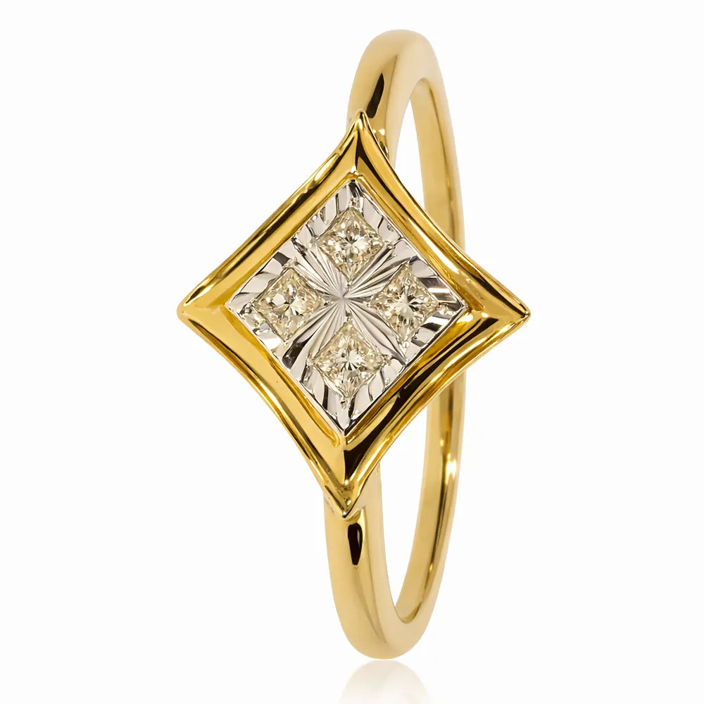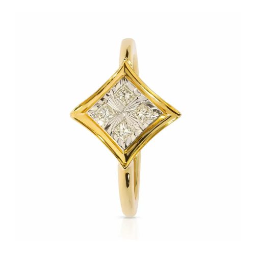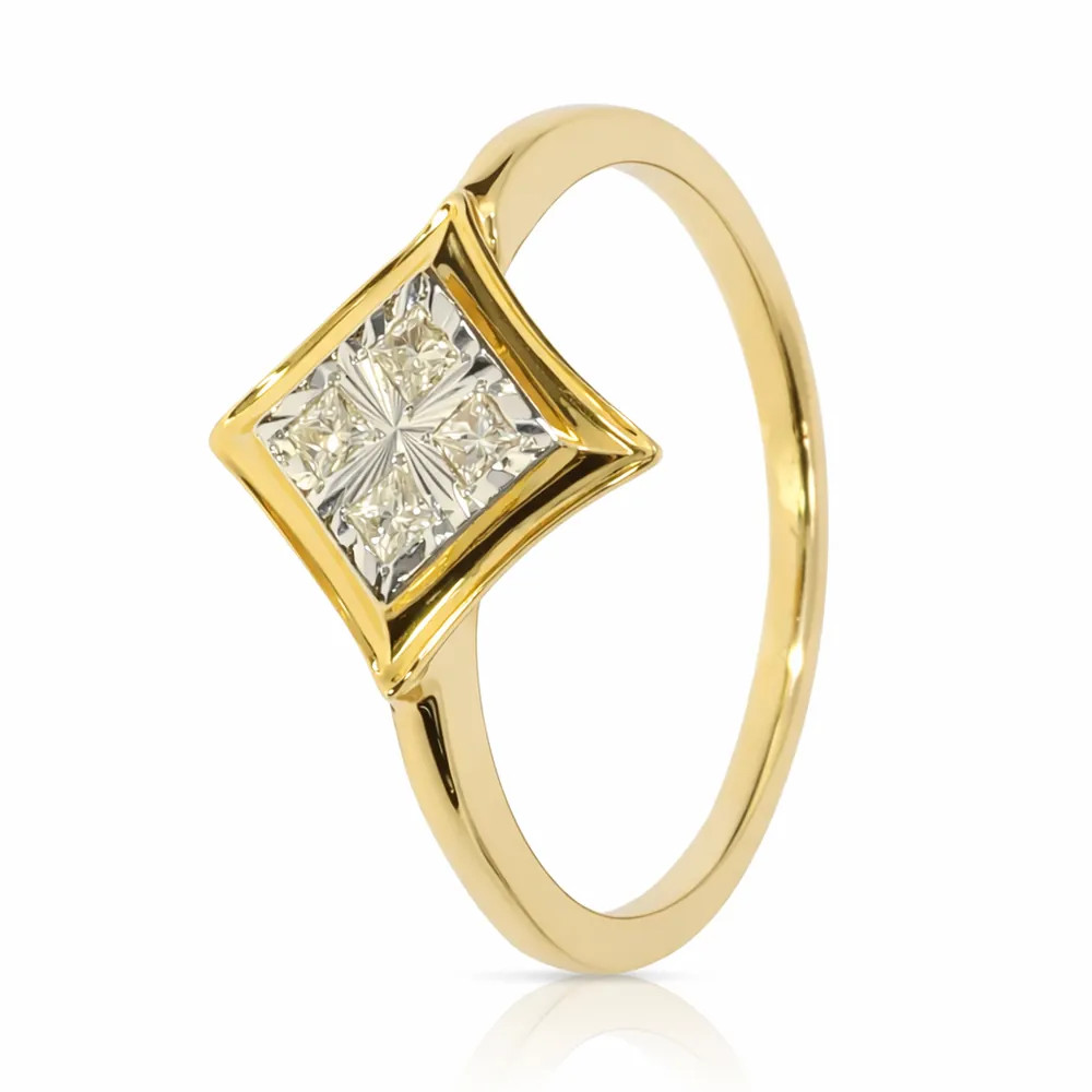 Egyedi négyzet formájú gyémánt gyűrű fehér arany foglalattal, 14 karátos sárga arany - 85005