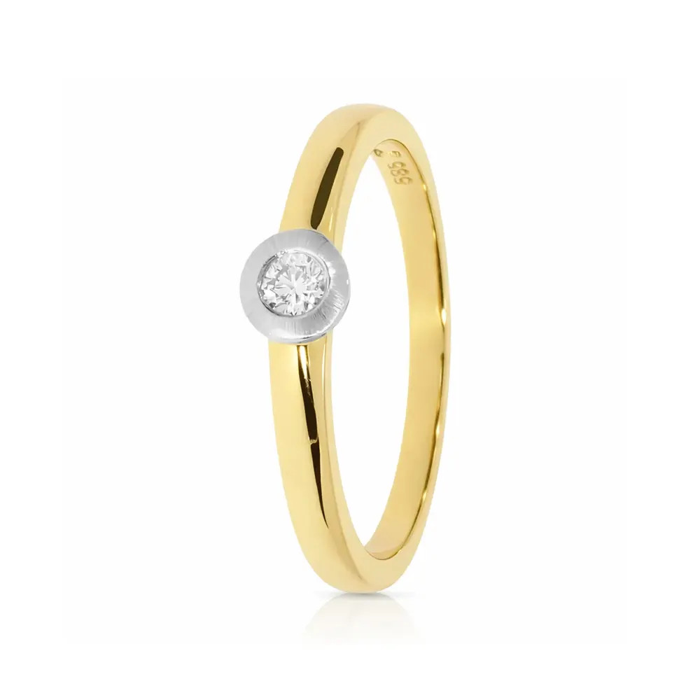 Klasszikus eljegyzési gyémánt gyűrű fehér arany foglalattal, 14 karátos sárga arany - 89156