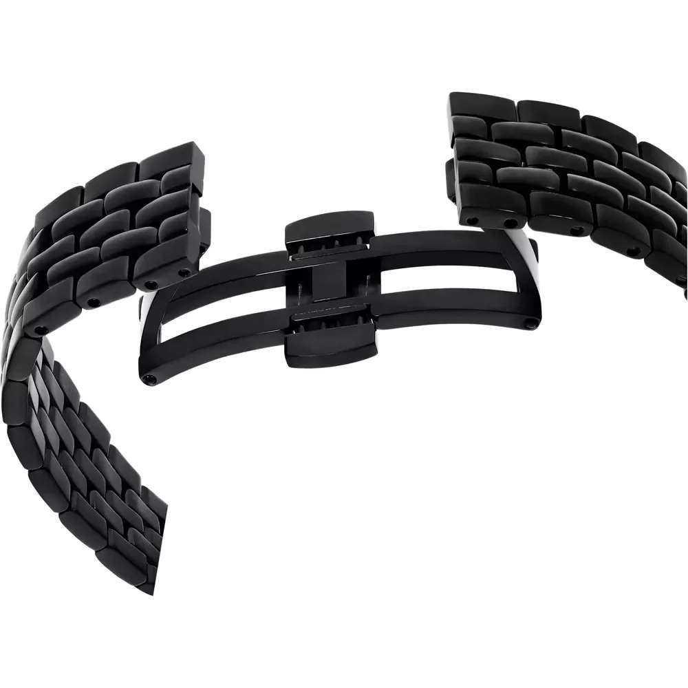 A többszálas fekete fém szíj pillangócsattal biztosítja a kényelmes, mégis karcsú megjelenést viseléskor :contentReference[oaicite:5]{index=5}. Tökéletes választás azoknak, akik stílusosan és magabiztosan szeretnék viselni egyedülálló órájukat.