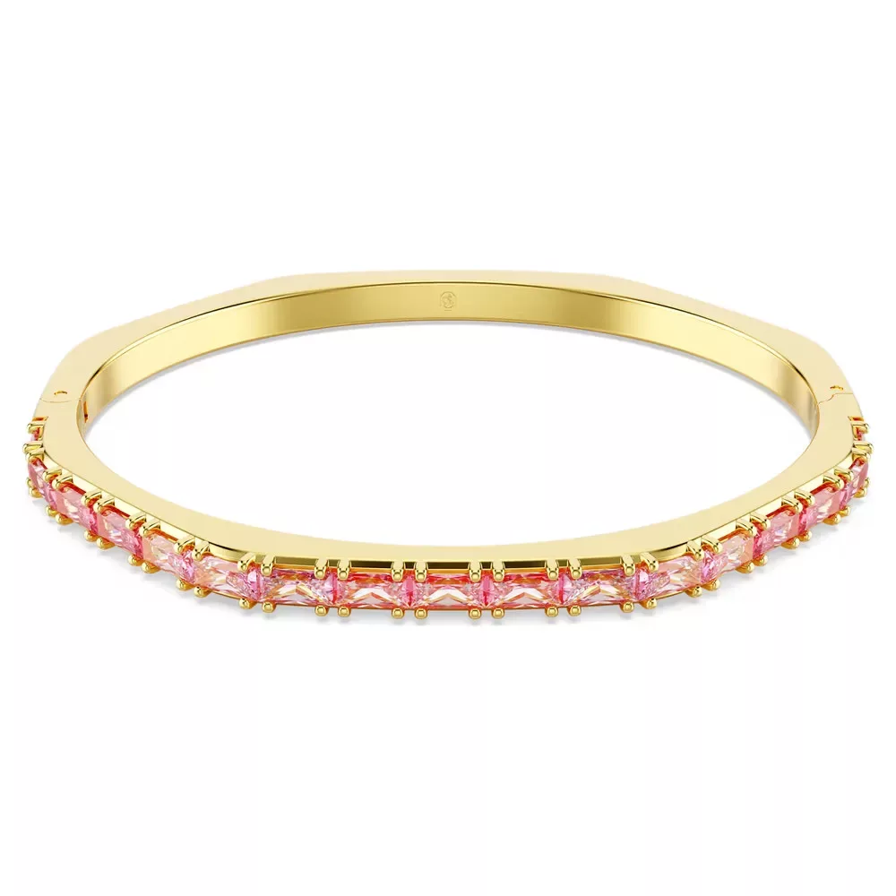 Matrix csuklópánt rózsaszín baguette csiszolású Swarovski cirkóniákkal, arany tónusú PVD bevonattal. Hinged kialakítás, cikkszám: 5705791.