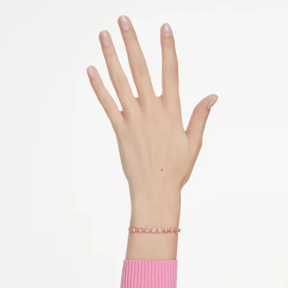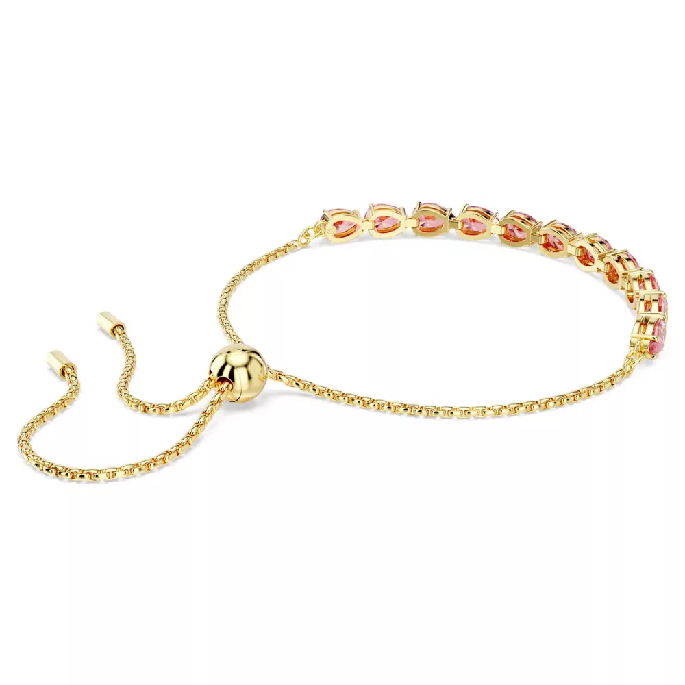 A Swarovski Matrix Tennis 5707187 karkötő arany tónusú kivitelben készült, pear cut rózsaszín kristályokkal. Csúsztatható zár, max. 24 cm hossz – visszafogottan ragyogó elegancia.