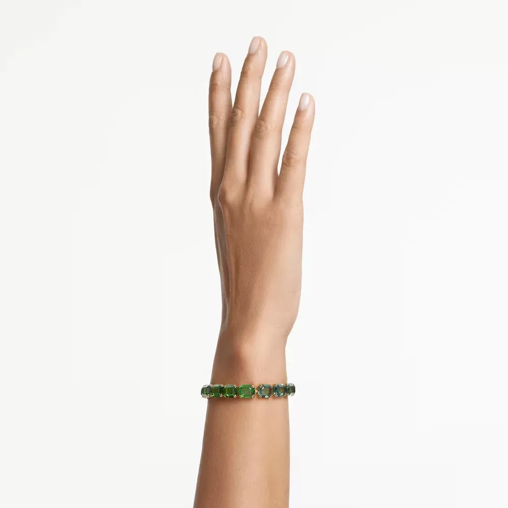 Swarovski Millenia 5671258 női karkötő arany tónusú bevonattal és nyolcszög metszésű, színátmenetes zöld kristályokkal — elegáns, vibráló csillogás.