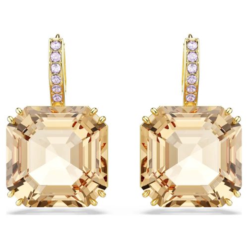 A Swarovski Millenia csepp fülbevaló (5725744) a fény és a kifinomultság tökéletes találkozását kínálja. Aranyszínű bevonattal készült fémfelületén karamell árnyalatú kristályok ragyognak, amelyek különleges csiszolásuk révén játékosan visszaverik a fényt.