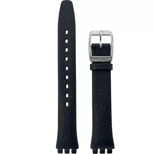 Az eredeti Swatch 15 mm-es fekete bőr óraszíj időtálló elegáns kivitelben.