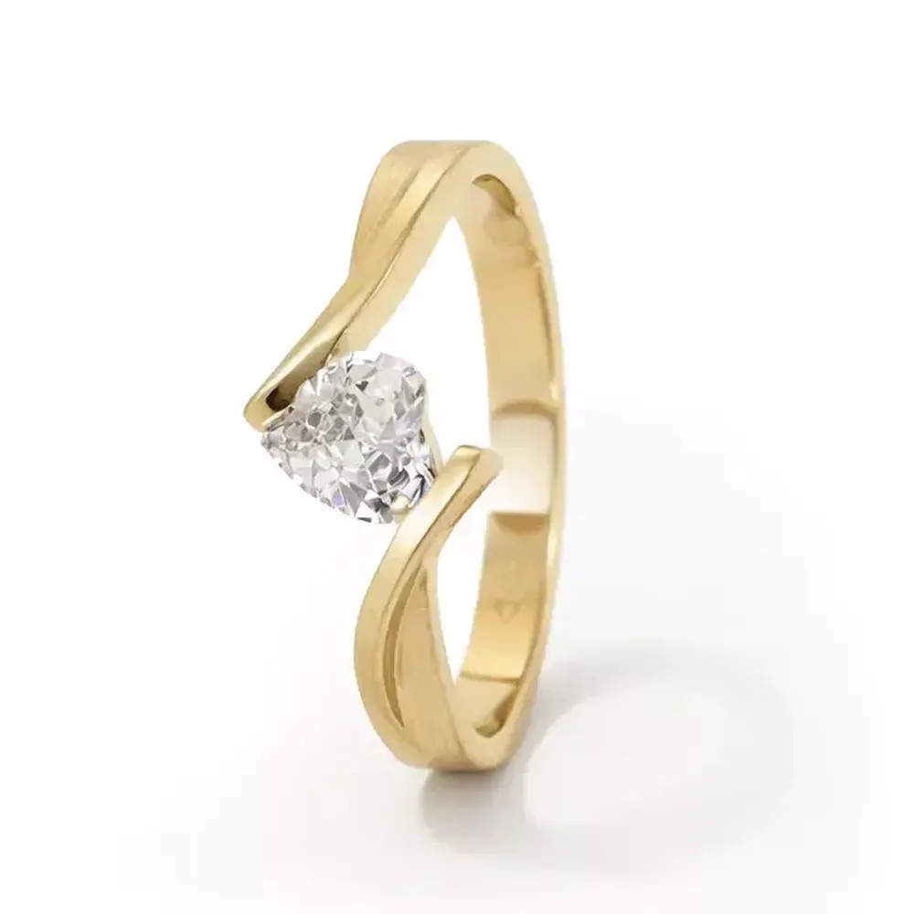 Romantikus szív forma a különleges pillanathoz - 14 karátos arany gyűrű ragyogó cirkon kővel, amely a szeretet szimbóluma.