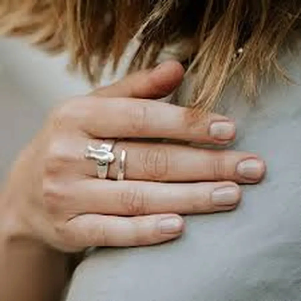 Ezüstözött prémium kivitel A gyűrű ezüstözött fémötvözetből készült, amely tartós és esztétikus felületet biztosít. A különleges kialakítás modern, mégis időtálló megjelenést nyújt.