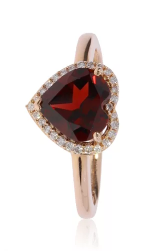 Vörös arany gyémánt és gránát köves gyűrű 85010
