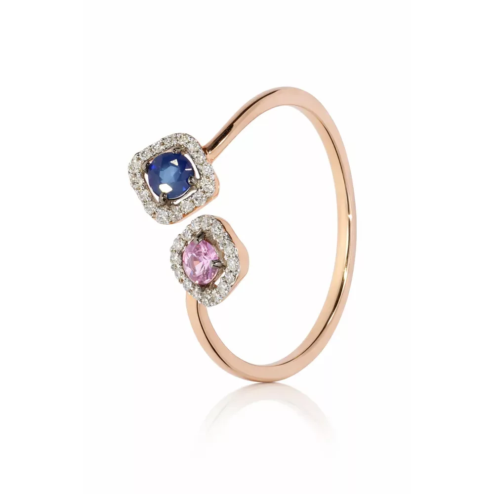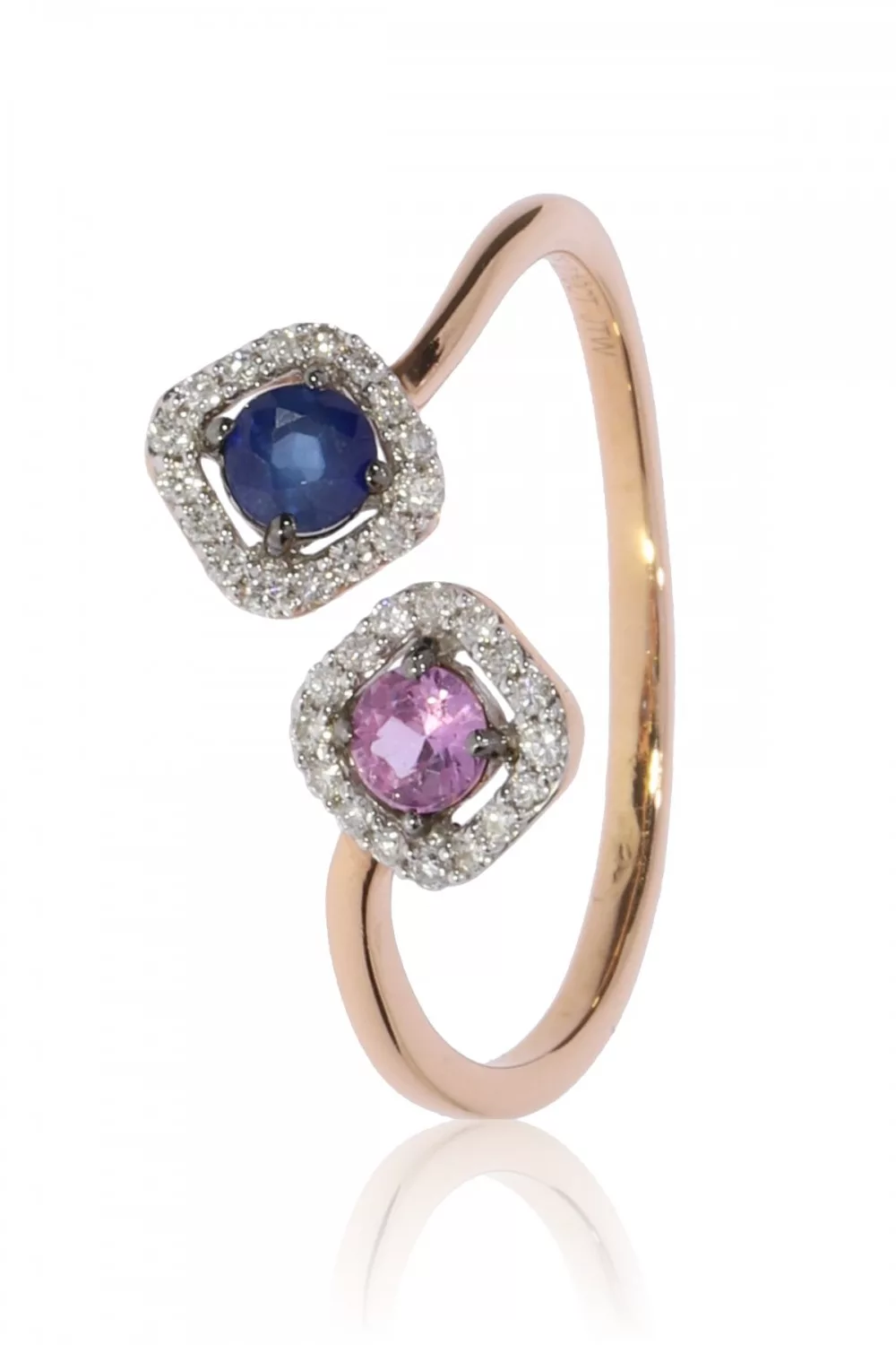 Vörös arany gyémánt és zafír köves gyűrű 77019