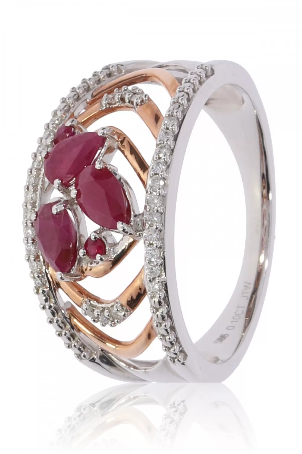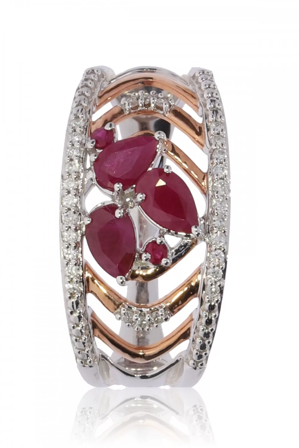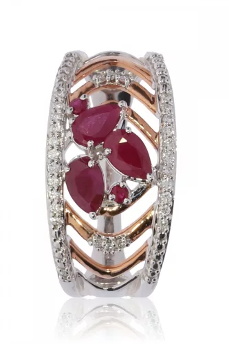 Vörös-Fehér arany gyémánt és rubin köves gyűrű 76956