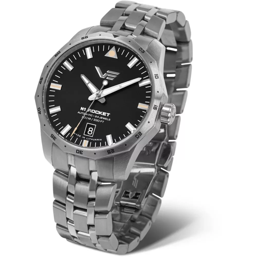 Vostok Europe NH35-125A747-B Rocket N-1 Compact – 39 mm automata, fekete számlap, acél szíj